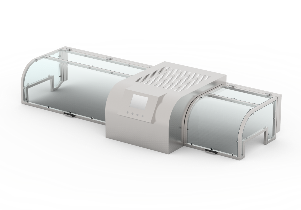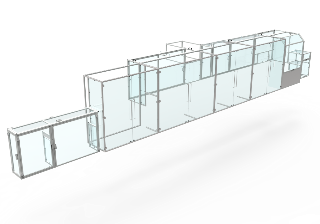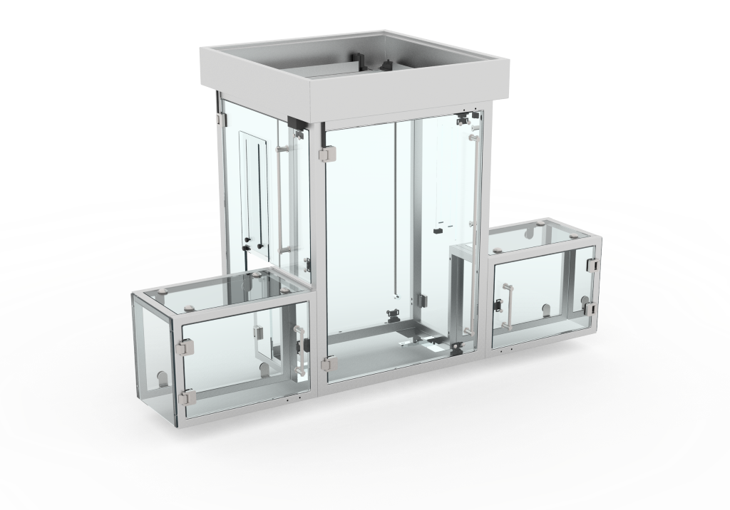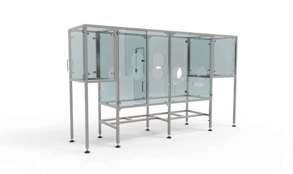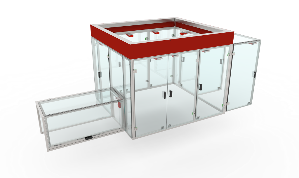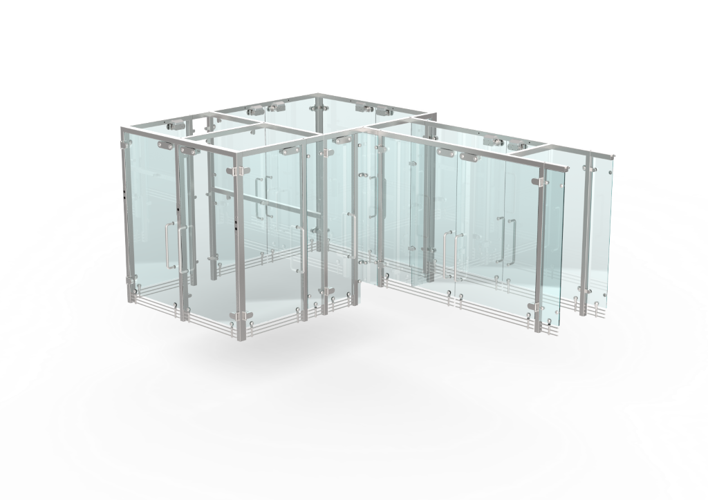 The doors and panels are made without a frame to facilitate cleaning and enhance the visibility of the machinery; they are produced in plastic with a thickness of 8-10-12-15 mm or in tempered-laminated glass with a thickness of 8-4+4-5+5 mm.